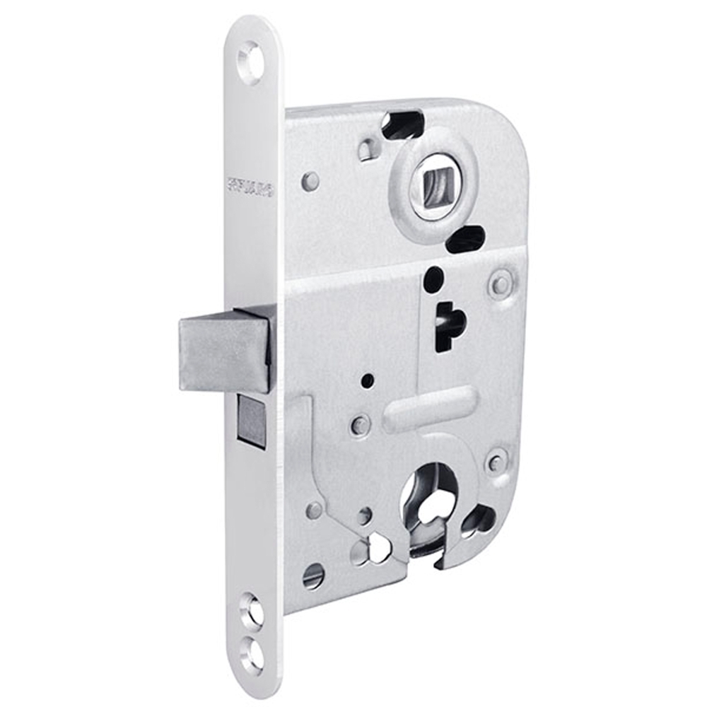 Врезной замок межкомнатный 2018 предназначен для установки на межкомнатные и сантехнические двери. Наиболее частое применение нашёл в общественных зданиях, торговых и офисных центрах, подсобных и складских помещениях, других местах повышенной проходимости. Реверсивный косой ригель для использования как в левых, так и в правых дверях. Ригель открывается цилиндром. Корпус замка выполнен из оцинкованной стали. Экономное решение, надёжный конструктив.