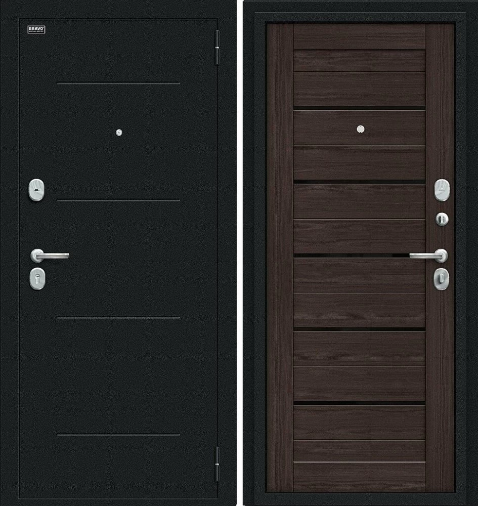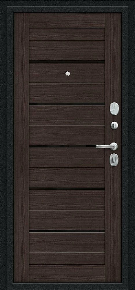 Надежная входная Браво Техно Kale Букле черное/Wenge Veralinga премиум класса по цене 36 769 руб. Большая толщина стали защитит от проникновения в ваш дом, квартиру или коттедж. Используется очень качественная фурнитура: замки, цилиндры, ручки, защелки. Покрытие и отделка двери изготовлено под внимательным контролем производителя. Дверь имеет долгий срок службы и гарантию.