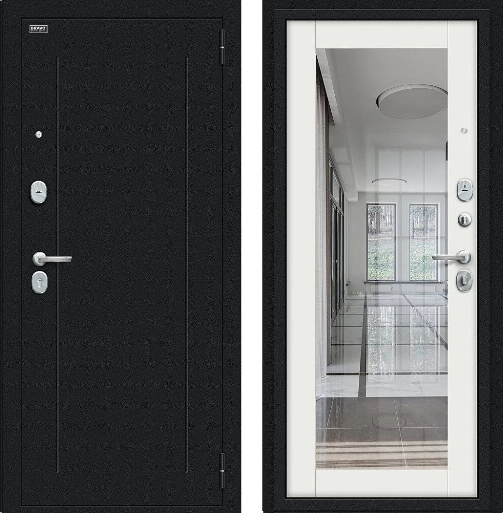Надежная входная Дверь Браво Флэш Букле черное/Off-white премиум класса по цене 36 419 руб. Большая толщина стали защитит от проникновения в ваш дом, квартиру или коттедж. Используется очень качественная фурнитура: замки, цилиндры, ручки, защелки. Покрытие и отделка двери изготовлено под внимательным контролем производителя. Дверь имеет долгий срок службы и гарантию.