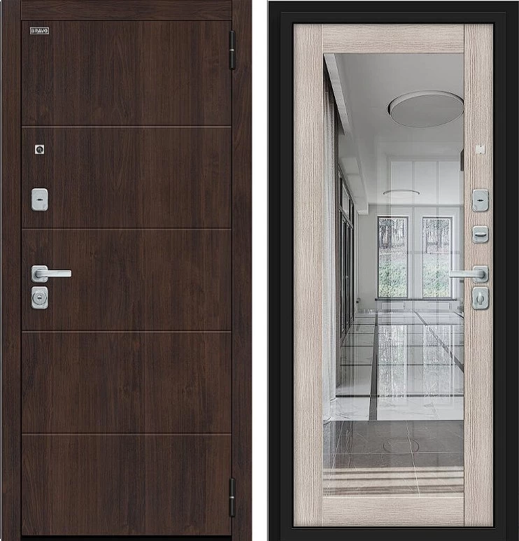 Надежная входная Дверь Браво Флэт/BChrome Almon/Cappuccino Melinga премиум класса по цене 44 919 руб. Большая толщина стали защитит от проникновения в ваш дом, квартиру или коттедж. Используется очень качественная фурнитура: замки, цилиндры, ручки, защелки. Покрытие и отделка двери изготовлено под внимательным контролем производителя. Дверь имеет долгий срок службы и гарантию.