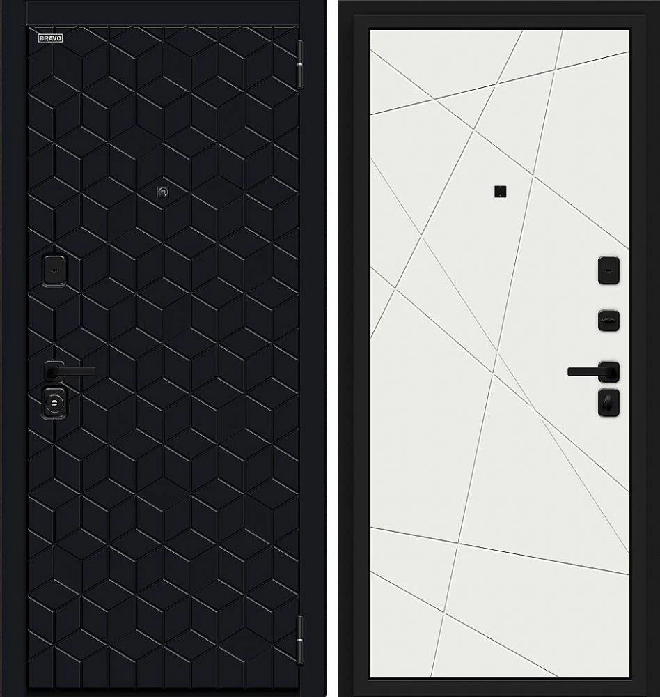 Надежная входная Дверь Браво Кьюб (RBE) Total Black/Super White премиум класса по цене 41 229 руб. Большая толщина стали защитит от проникновения в ваш дом, квартиру или коттедж. Используется очень качественная фурнитура: замки, цилиндры, ручки, защелки. Покрытие и отделка двери изготовлено под внимательным контролем производителя. Дверь имеет долгий срок службы и гарантию.