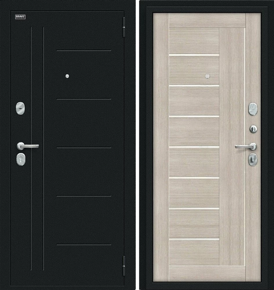 Надежная входная Дверь Браво Проф Букле черное/Cappuccino Veralinga премиум класса по цене 35 469 руб. Большая толщина стали защитит от проникновения в ваш дом, квартиру или коттедж. Используется очень качественная фурнитура: замки, цилиндры, ручки, защелки. Покрытие и отделка двери изготовлено под внимательным контролем производителя. Дверь имеет долгий срок службы и гарантию.
