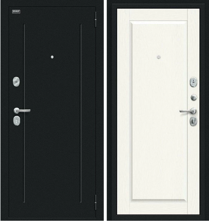 Надежная входная Дверь Браво Сьют Kale Букле черное White Wood премиум класса по цене 38 989 руб. Большая толщина стали защитит от проникновения в ваш дом, квартиру или коттедж. Используется очень качественная фурнитура: замки, цилиндры, ручки, защелки. Покрытие и отделка двери изготовлено под внимательным контролем производителя. Дверь имеет долгий срок службы и гарантию.
