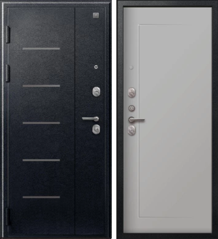 Надежная входная Дверь V-03 Черный муар - Кашемир сильвер премиум класса по цене 42 079 руб. Большая толщина стали защитит от проникновения в ваш дом, квартиру или коттедж. Используется очень качественная фурнитура: замки, цилиндры, ручки, защелки. Покрытие и отделка двери изготовлено под внимательным контролем производителя. Дверь имеет долгий срок службы и гарантию.