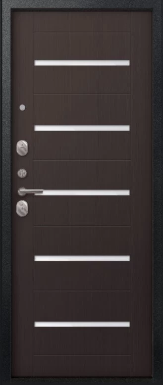 Надежная входная Дверь V-05 Черный муар - Темная лиственница премиум класса по цене 44 369 руб. Большая толщина стали защитит от проникновения в ваш дом, квартиру или коттедж. Используется очень качественная фурнитура: замки, цилиндры, ручки, защелки. Покрытие и отделка двери изготовлено под внимательным контролем производителя. Дверь имеет долгий срок службы и гарантию.